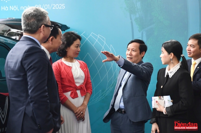 Chủ tịch VCCI Phạm Tấn Công nhận quà lưu niệm do bà Phó Chủ tịch Tập đoàn Vingroup kiêm Chủ tịch công ty Vinfast toàn cầu