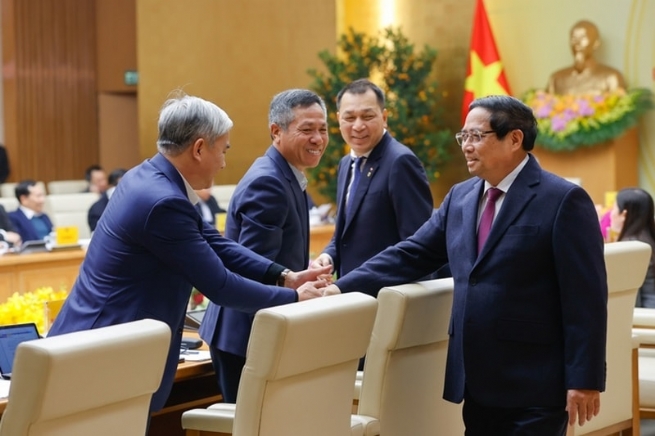 Sáng nay (10/2), Thường trực Chính phủ gặp gỡ doanh nghiệp về nhiệm vụ, giải pháp để doanh nghiệp tư nhân tăng tốc, bứt phá, góp phần phát triển đất nước nhanh, bền vững trong kỷ nguyên mới (Ảnh: Báo Chính phủ)