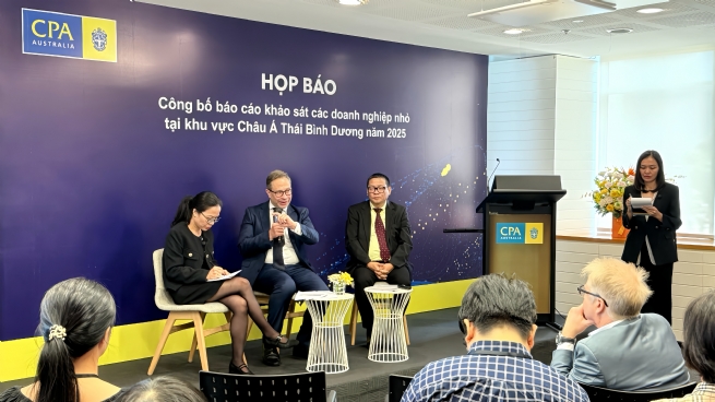 Họp báo Công bố báo cáo Khảo sát các doanh nghiệp nhỏ tại khu vực Châu Á - Thái Bình Dương năm 2025 do CPA Australia tổ chức tại Việt Nam đã thu hút được sự quan tâm của nhiều cơ quan thông tấn báo