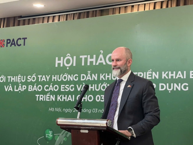 Ông Fergus McBean, Bí thư Thứ nhất về Khí hậu và Thiên nhiên, Đại sứ quán Anh cho biết: “ESG đang là một trong những yếu tố chính định hình chiến lược và đầu tư của các doanh nghiệp. Thực hành ESG giúp các doanh nghiệp Việt Nam đáp ứng yêu cầu từ các tổ chức tài chính và thị trường quốc tế, đặc biệt là Vương quốc Anh và EU. Cả hai thị trường đều có kế hoạch đưa ra các biện pháp yêu cầu doanh nghiệp Việt Nam báo cáo về ESG và các biện pháp liên quan đến khí hậu đã thực hiện.