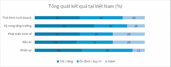 Theo đó, bất chấp những gián đoạn toàn cầu liên tục, 54% doanh nghiệp Đức tại Việt Nam kỳ vọng tình hình kinh doanh sẽ được cải thiện trong năm tới. 80% doanh nghiệp đánh giá tình hình kinh doanh hiện tại là “tốt” hoặc “đạt yêu cầu”, cho thấy môi trường hoạt động tương đối ổn định. Niềm tin cũng thể hiện qua các quyết định hướng tới tương lai: 38% doanh nghiệp có kế hoạch tăng đầu tư, trong khi 43% dự kiến tăng nhân sự trong năm 2025.