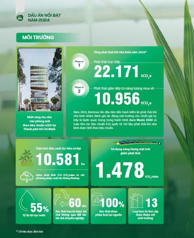 Các chỉ số nổi bật về môi trường trong Báo cáo Phát triển Bền vững của Betrimex