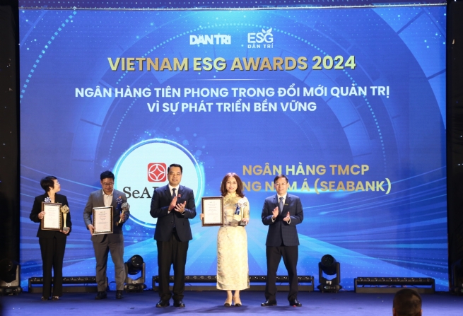 Ngân hàng TMCP Đông Nam Á (SeABank, HOSE: SSB) vừa vinh dự nhận danh vị “Ngân hàng tiên phong trong đổi mới quản trị vì sự phát triển bền vững” tại lễ trao giải Vietnam ESG Awards lần thứ nhất do Báo Dân trí tổ chức. Giải thưởng ghi nhận những nỗ lực, sáng kiến và hiệu quả mang lại của SeABank trong thực thi các tiêu chí Môi trường - Xã hội - Quản trị (ESG) và lan tỏa tinh thần trách nhiệm tới cộng đồng.