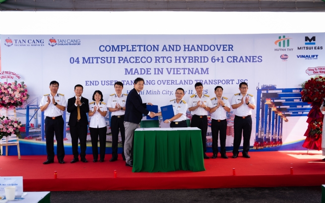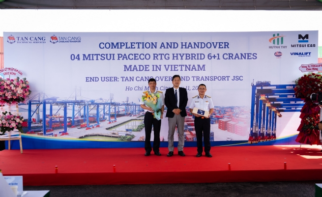 Nghi thức bàn giao cẩu giữa Tập đoàn Mitsui E&S (Nhật Bản) và đại diện Vận tải bộ Tân Cảng