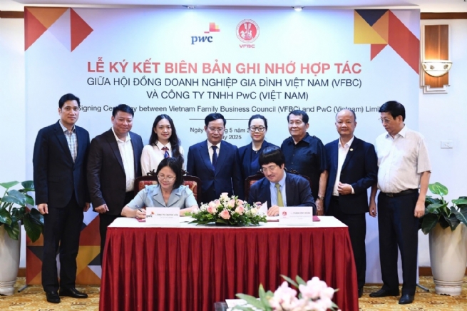 Ngày 15/5, PwC Việt Nam và Hội đồng Doanh nghiệp Gia đình Việt Nam (VFBC) đã ký kết Biên bản Ghi nhớ Hợp tác (MoU), thiết lập nền tảng hợp tác chiến lược nhằm đồng hành hỗ trợ các doanh nghiệp gia đình Việt Nam trong hành trình phát triển bền vững, chuyển giao thế hệ và nâng cao năng lực quản trị.