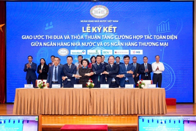 Các ngân hàng ký giao ước thi đua và thỏa thuận tăng cường hợp tác toàn điện - Ảnh:VGP/HT