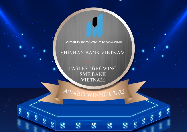 Ngân hàng TNHH MTV Shinhan Việt Nam (“Ngân hàng Shinhan”) vừa nhận giải thưởng “Ngân hàng tăng trưởng nhanh nhất trong mảng kinh doanh khách hàng SME tại Việt Nam năm 2025” do Tạp chí World Economic Magazine (UK) trao tặng.