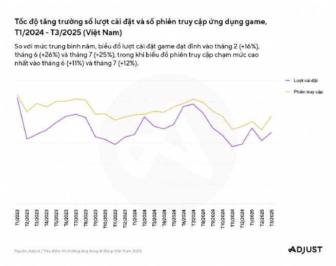 Báo cáo cho thấy ba phân khúc chủ lực - ứng dụng game, tài chính và giải trí - đang đóng vai trò then chốt trong tăng trưởng thị trường ứng dụng di động tại Việt Nam, góp phần định hình vị thế của Việt Nam trên bản đồ ứng dụng di động khu vực: Năm 2024, số phiên truy cập ứng dụng tài chính đã tăng vọt 99%, lượt cài đặt ứng dụng giải trí tăng 25% và lượt cài đặt game tăng 3% so với cùng kỳ năm trước. Đáng chú ý, tỷ lệ người dùng đồng ý chia sẻ dữ liệu (ATT opt-in) đối với các ứng dụng game đã tăng lên gần 50% trong quý 1 năm 2025.