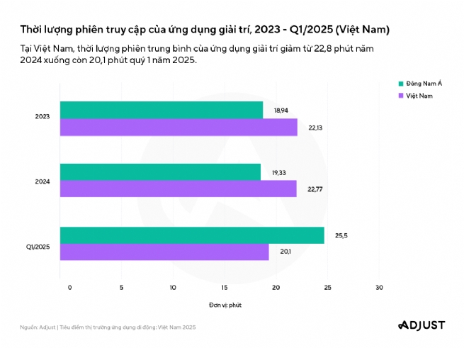 Năm 2024, lượt cài đặt ứng dụng giải trí tăng 25% so với cùng kỳ năm ngoái, ghi nhận hai đợt tăng ấn tượng vào tháng 2 (tăng 30%) và tháng 6 (tăng 32%). Thời lượng trung bình mỗi phiên xem video trực tuyến tăng từ 15,25 phút năm 2024 lên 20,19 phút quý 1 năm 2025.