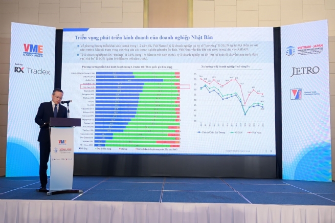 Ông Haruhiko Ozasa, Trưởng đại diện, Tổ chức Thúc đẩy Ngoại thương Nhật Bản (JETRO) cho biết: Theo khảo sát mới nhất của JETRO, tính đến thời điểm hiện nay, tỷ lệ nội địa hoá của các doanh nghiệp Nhật Bản tại Việt Nam chiếm 36,6%, tương đương với Malaysia và Philippines. Vào năm 2024, đồng Yên suy yếu góp phần làm tăng tỷ lệ cung ứng từ Nhật Bản (tăng 2,7 điểm so với năm trước), dẫn tới giảm tỷ lệ nội địa hoá tại Việt Nam.