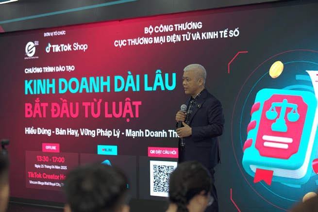 Ngày 25/6, Trung tâm Phát triển Thương mại Điện tử và Công nghệ số (Bộ Công Thương) và TikTok Shop chính thức khởi động Chương trình đào tạo về pháp lý trong Thương mại điện tử (TMĐT) với tên gọi “Kinh doanh dài lâu - Bắt đầu từ luật”. Chương trình sẽ được tổ chức định kỳ hàng tháng, kết hợp linh hoạt giữa đào tạo trực tiếp và trực tuyến, tiếp cận cộng đồng nhà bán hàng, nhà sáng tạo TikTok Shop trên cả nước.