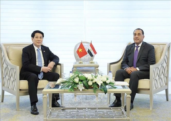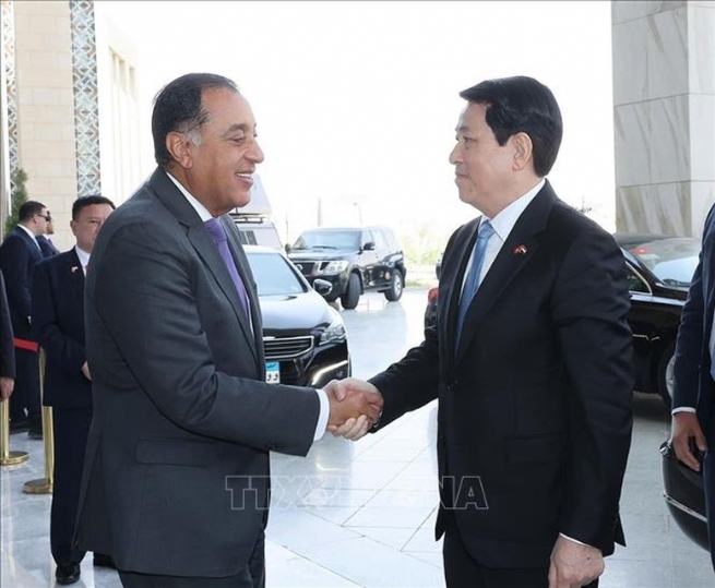 Thủ tướng Mostafa Madbouly bày tỏ vui mừng được hội kiến Chủ tịch nước Lương Cường nhân chuyến thăm cấp nhà nước của Chủ tịch nước tới Ai Cập, khẳng định chuyến thăm là dấu mốc quan trọng, mở ra một khởi đầu mới trong mối quan hệ song phương tốt đẹp giữa hai nước.