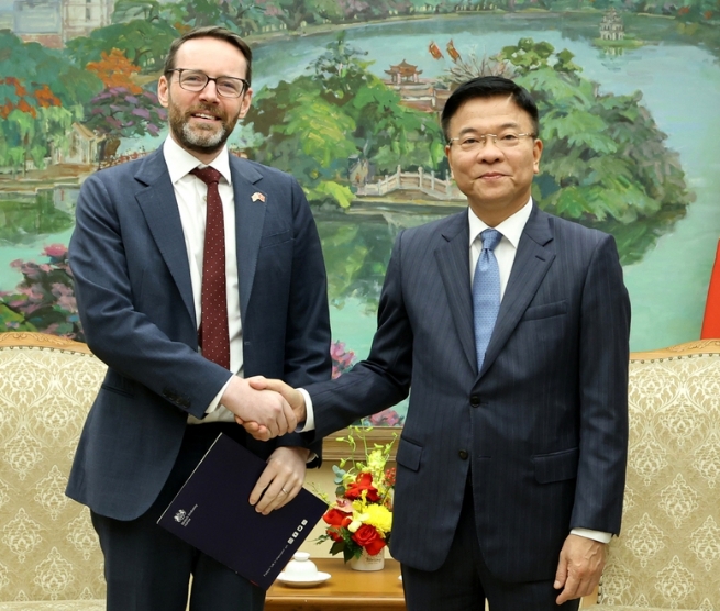 Phó Thủ tướng Lê Thành Long tiếp Đại sứ Đặc mệnh toàn quyền Vương quốc Anh tại Việt Nam, ông Iain Frew - Ảnh: VGP/Đức Tuân