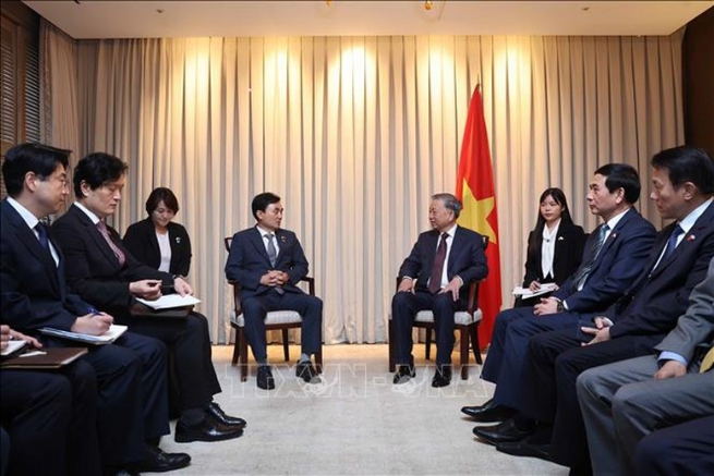 Tổng Bí thư Tô Lâm bày tỏ vui mừng nhận thấy quan hệ Đối tác chiến lược toàn diện giữa hai nước phát triển tốt đẹp trên mọi lĩnh vực và quan hệ hợp tác giữa Quốc hội hai nước và truyền thống giao lưu hữu nghị, gắn bó giữa hai Nhóm nghị sĩ hữu nghị đã góp phần tích cực vào sự phát triển toàn diện quan hệ Việt Nam – Hàn Quốc. Tổng Bí thư chia sẻ trên con đường phát triển của mình, Việt Nam mong muốn tăng cường hợp tác với các nước, trong đó có Hàn Quốc, một trong những đối tác chiến lược quan trọng hàng đầu của Việt Nam.