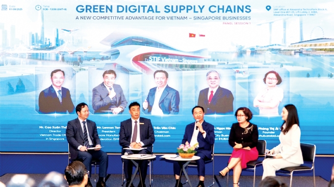 Các đại biểu chia sẻ về cơ hội hợp tác giao thương giữa doanh nghiệp Việt Nam và Singapore tại Diễn đàn Thương mại Bền vững & Đổi mới Sáng tạo Việt Nam - Singapore, ngày 1/8/2025