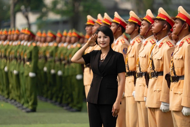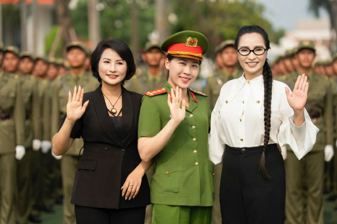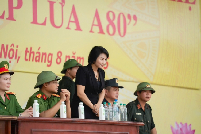 Hình ảnh nữ doanh nhân trong trang phục thanh lịch, sánh bước cùng các chiến sĩ giữa hàng ngũ nghiêm trang, đã để lại ấn tượng đẹp về một tấm lòng nhân ái, luôn hướng về cộng đồng và dành sự quan tâm đặc biệt đến những người đang ngày đêm gìn giữ bình yên cho đất nước.