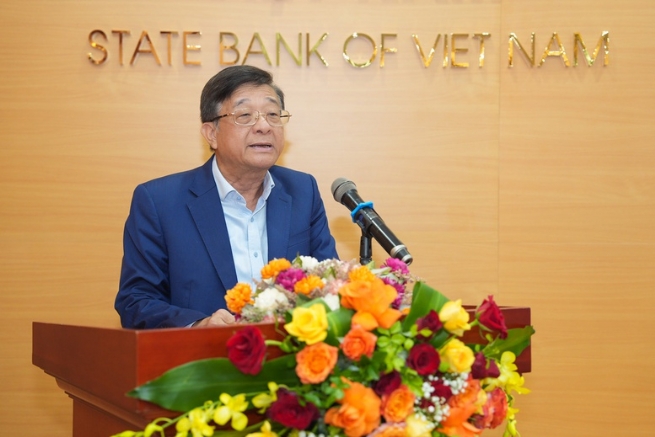 TS. Nguyễn Quốc Hùng, Phó Chủ tịch kiêm Tổng Thư ký Hiệp hội Ngân hàng Việt Nam chia sẻ thông tin tại tọa đàm - Ảnh: VGP/HT