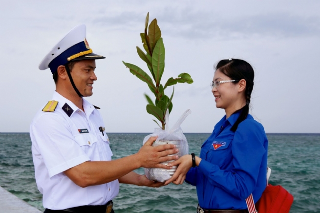 Dù hiếm khi có cơ hội được đặt chân tới Trường Sa nhưng mỗi người Việt Nam đều có thể “hóa thân” thành chiến sĩ Hải quân mang những cây non vượt sóng ra đảo xa