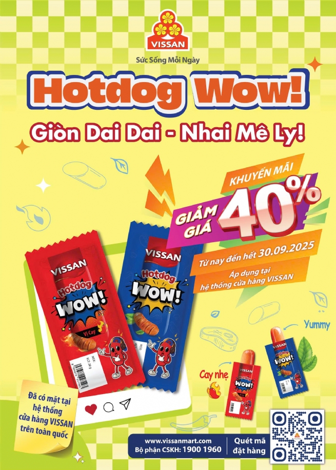 Với hơn 55 năm đồng hành cùng bữa ăn Việt, VISSAN kiên định mang đến sản phẩm an toàn – chất lượng – tiện lợi. Chuỗi cung ứng khép kín “Feed – Farm – Food” cùng các tiêu chuẩn quốc tế như ISO 22000:2018, HACCP là cam kết bảo đảm mỗi sản phẩm đều minh bạch và đáng tin cậy. Hotdog WOW! không chỉ là một sản phẩm mới, mà còn là thông điệp về sự năng động, tiện lợi và dinh dưỡng trọn vẹn cho thế hệ người tiêu dùng hiện đại.