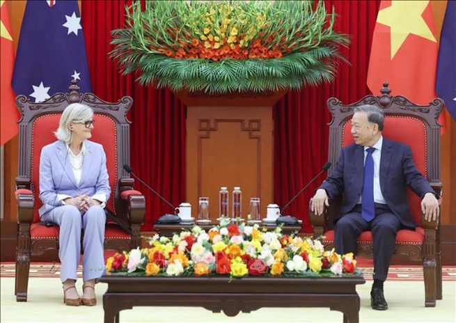 Tổng Bí thư Tô Lâm tiếp Toàn quyền Australia Sam Mostyn thăm cấp Nhà nước tới Việt Nam. Ảnh: TTXVN