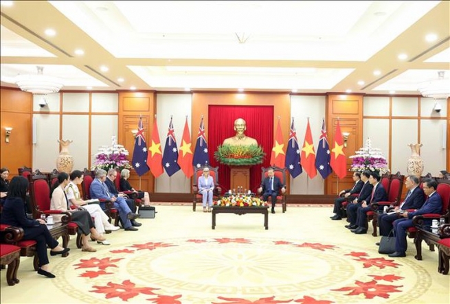 Tổng Bí thư Tô Lâm khẳng định chủ trương nhất quán của Việt Nam luôn coi trọng quan hệ hữu nghị và Đối tác chiến lược toàn diện với Australia và nhấn mạnh Australia là một đối tác tin cậy của Việt Nam; bày tỏ vui mừng khi quan hệ song phương ngày càng phát triển mạnh mẽ, thực chất và hiệu quả; hai bên trở thành những đối tác then chốt, hàng đầu của nhau về chính trị, kinh tế, khoa học - công nghệ.