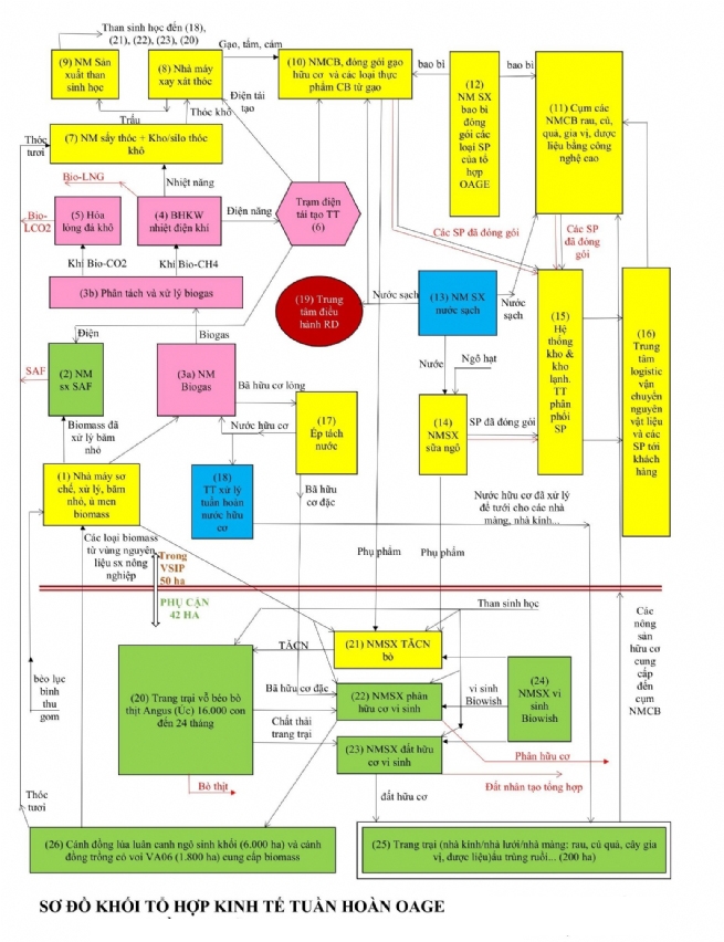 Từ đó, tạo ra sự tăng trưởng doanh thu với tốc độ cao 30%/năm nhờ mô hình OAGE: đến năm 2033 sẽ có 10 tổ hợp hoạt động đồng thời, đến năm 2039 có 50 tổ hợp OAGE hoạt động tại TP Cần Thơ. Đến năm 2045 sẽ có tổng cộng 300 tổ hợp OAGE hoạt động đồng thời tại vùng Đồng bằng sông Cửu Long, tạo ra một động lực phát triển 2 con số cho toàn bộ TP Cần Thơ và vùng Đồng bằng sông Cửu Long.