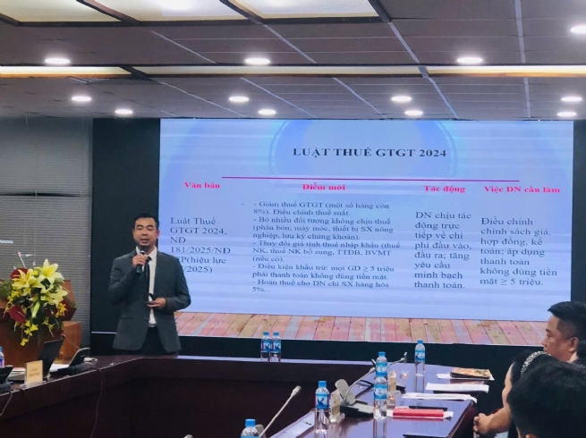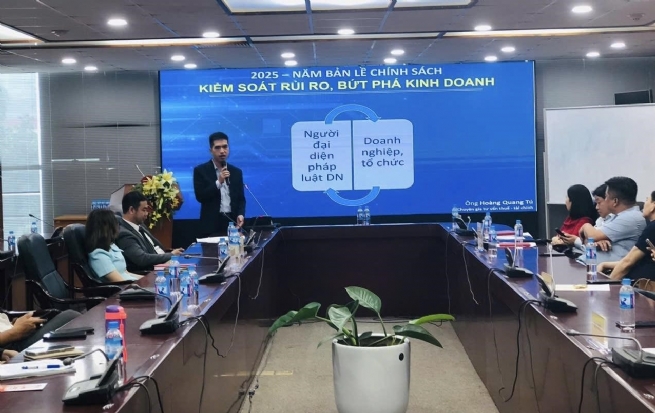Ông Hoàng Quang Tú – Giám đốc Công ty TNHH Giải pháp doanh nghiệp PSB Việt Nam mang đến cho Hội nghị giải pháp giảm thiểu rủi ro cho doanh nghiệp, hộ kinh doanh từ các chính sách pháp luật thay đổi liên quan hoạt động kế toán, nhân sự, hành chính, giúp doanh nghiệp hiểu rõ hơn, phòng ngừa rủi ro, tuân thủ pháp luật, thực thi chính sách đúng theo quy định của Nhà nước.