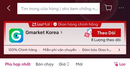 Người dùng có thể tìm gian hàng chính hãng Gmarket Korea bằng cách gõ từ khóa "Gmarket". Ảnh: Lazada