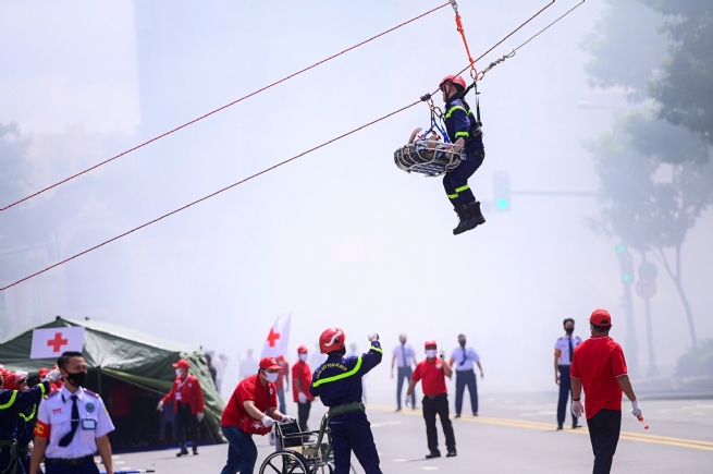 Lực lượng Cảnh sát PCCC - Công an TP Hồ Chí Minh phối hợp tổ chức diễn tập phương án chữa cháy và CNCH