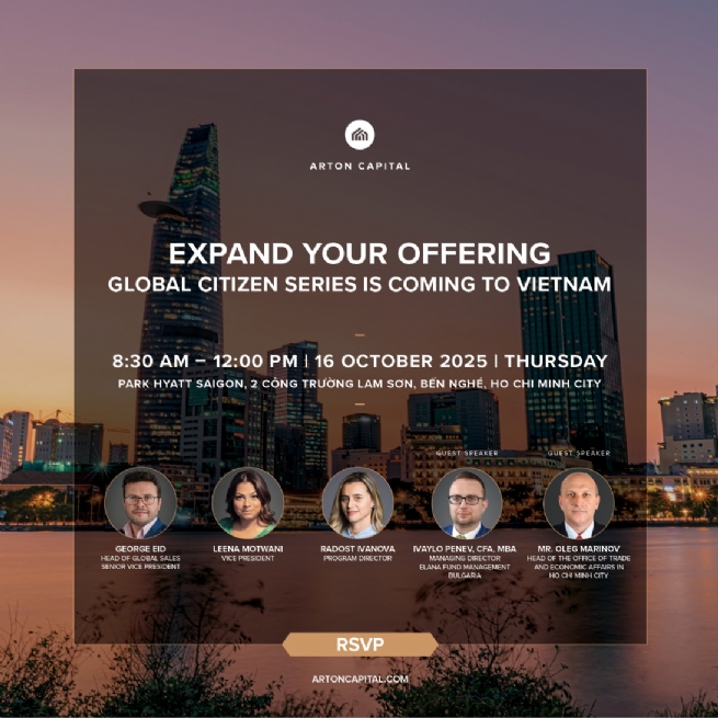 Ngày 16/10/2025, tại khách sạn Park Hyatt Saigon (TP.Hồ Chí Minh), Arton Capital - đơn vị tư vấn hàng đầu thế giới trong lĩnh vực giải pháp định cư và quốc tịch sẽ tổ chức sự kiện “Global Citizen Series – Vietnam”.