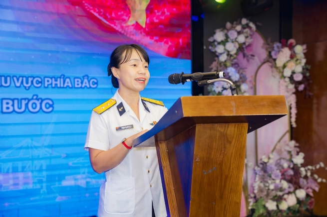 Trung tá Phạm Thị Mỹ Lệ gửi lời Tri ân tới các khách hàng, đối tác Hàng tàu và Đại lý Hãng tàu tại sự kiện Tri ân