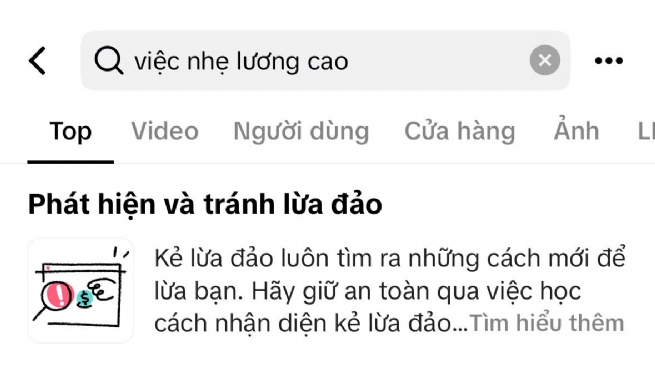 Gửi cảnh báo, tin nhắn và email hướng dẫn an toàn đến hàng triệu người dùng TikTok tại Việt Nam. Hiển thị cảnh báo trực tiếp khi người dùng tìm kiếm các từ khóa liên quan đến lừa đảo trên nền tảng TikTok.