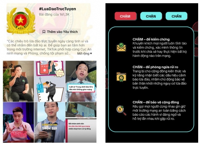 Phát động thử thách hashtag #ChamMaChac và #LuaDaoTrucTuyen, khuyến khích cộng đồng sáng tạo video chia sẻ kinh nghiệm, mẹo nhận biết và phòng tránh lừa đảo.