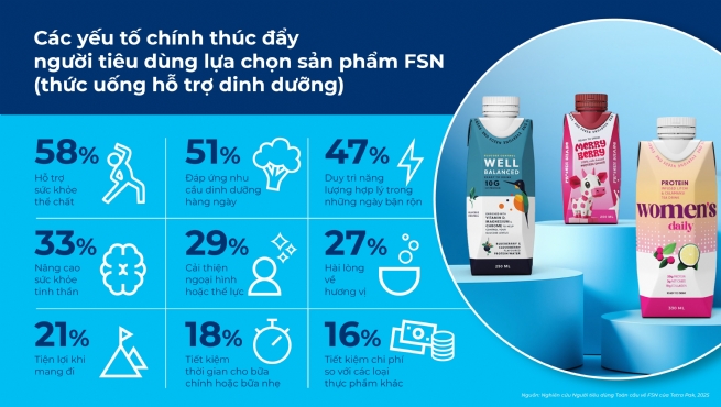 Các yếu tố chính thúc đẩy người tiêu dùng lựa chọn sản phẩm thức uống hỗ trợ dinh dưỡng (FSN), theo Nghiên cứu Người tiêu dùng Toàn cầu của Tetra Pak 2025