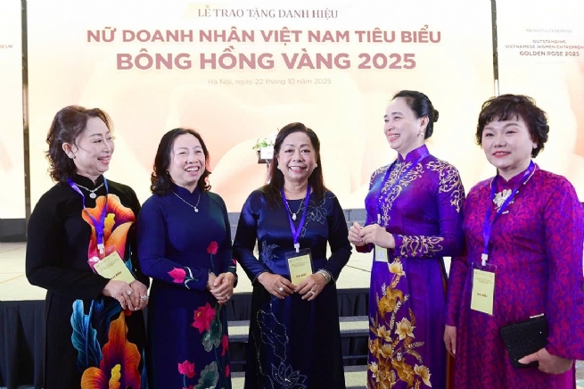 98 nữ doanh nhân- 98 bông hồng vàng đã được trao tặng danh hiệu “Nữ Doanh nhân Việt Nam tiêu biểu – Bông Hồng Vàng năm 2025”, ghi nhận bản lĩnh, trí tuệ và những đóng góp nổi bật của họ trong phát triển kinh tế, đổi mới sáng tạo và lan tỏa tinh thần doanh nhân nữ Việt Nam trong thời kỳ hội nhập.