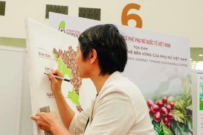 và các hoạt động kết nối cộng đồng. Chị Dương Thị Mai (The Bookstop Café) mang đến câu chuyện kết hợp văn hóa – sách – cà phê để lan tỏa tinh thần bản địa đến cộng đồng. Chị Lê Ngọc Thy (ThyThy Farm) cho biết mô hình canh tác bền vững của gia đình được gìn giữ qua hai thế hệ: cha mẹ mang lại nền tảng kinh nghiệm, còn thế hệ trẻ áp dụng kỹ thuật chế biến hiện đại và hướng hữu cơ. Sự kết hợp này giúp nâng cao giá trị hạt cà phê đồng thời bảo vệ đất đai cho tương lai, thể hiện vai trò ngày càng rõ nét của phụ nữ trong phát triển cà phê bền vững. Những câu chuyện giản dị nhưng đầy nghị lực đã khắc họa rõ vai trò của phụ nữ – những người giữ lửa thầm lặng cho ngành cà phê Việt Nam.