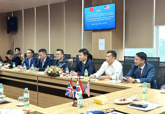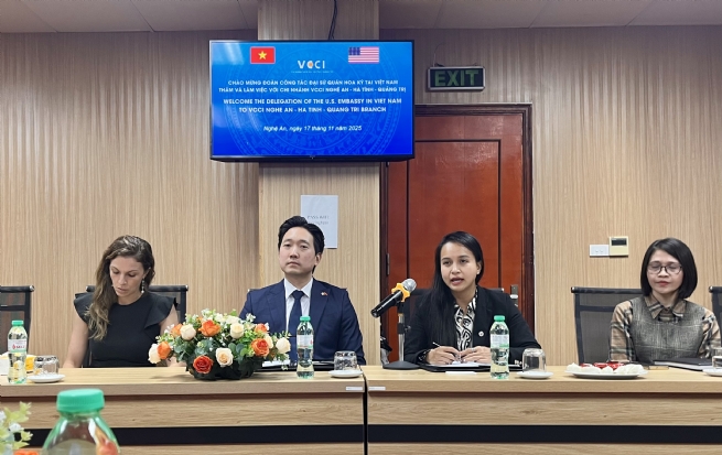 Trong khuôn khổ chuyến thăm và làm việc tại Nghệ An của Đoàn công tác Đại sứ quán Hợp chủng quốc Hoa Kỳ do ông Moses Kang – Đặc vụ làm Trưởng đoàn, bà Stepphanie và bà Khu Bích Việt – Trợ lý an ninh khu vực; chiều ngày 17/11/2025, Đoàn đã có buổi làm việc với Liên đoàn Thương mại và Công nghiệp Việt Nam (VCCI) Chi nhánh tại Nghệ An – Hà Tĩnh – Quảng Trị. Tiếp và làm việc với Đoàn, về phía Chi nhánh VCCI Nghệ An – Hà Tĩnh – Quảng Trị có ông Bùi Xuân Sinh, Giám đốc; ông Lê Nguyễn Chung, Phó Giám đốc cùng các cán bộ phụ trách về Đối ngoại, Xúc tiến thương mại và Hội viên. Cùng làm việc với Đoàn còn có đại diện Sở Ngoại vụ cùng một số doanh nghiệp trên địa bàn tỉnh Nghệ An.