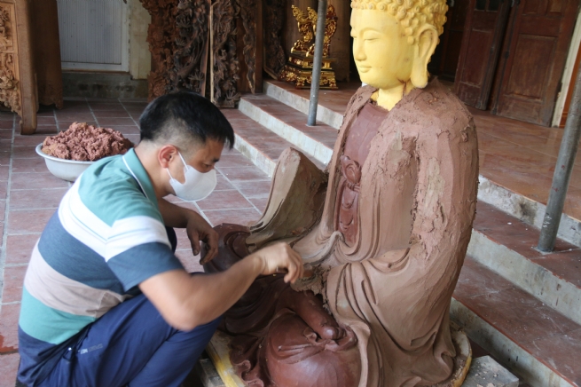 Làng nghề Sơn Đồng – mạch nguồn bền bỉ của nghề tạc tượng sơn son thếp vàng Làng nghề tạc tượng gỗ, tượng sơn son thếp vàng Sơn Đồng từ lâu đã thu hút giới sành đồ thờ và đồ trang trí bởi giá trị văn hóa – lịch sử độc đáo. Đây là làng nghề có sức sống bền bỉ theo suốt chiều dài lịch sử dân tộc. Dù trải qua nhiều giai đoạn thăng trầm, mạch nguồn nghề truyền thống vẫn được gìn giữ, thể hiện qua từng hoa văn, họa tiết phản ánh các lớp trầm tích văn hóa. Sơn Đồng hiện còn lưu giữ nhiều di tích cổ như đình, chùa, đền, nhà thờ tổ… Sản phẩm của làng chiếm hơn 70% thị phần toàn quốc về tượng và đồ thờ sơn son thếp vàng, bạc, phục vụ đời sống văn hóa – tâm linh. Sản phẩm của làng nghề không chỉ phổ biến khắp ba miền mà còn xuất khẩu tới nhiều nước như Nga, Ukraina, Pháp, Mỹ và các quốc gia Đông Nam Á như Thái Lan, Lào, Campuchia. |