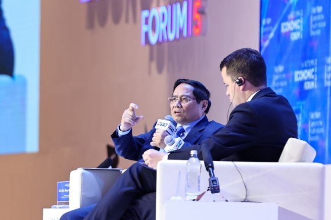Trong chương trình đối thoại dài hơn 60 phút, Thủ tướng Phạm Minh Chính đã trả lời nhiều câu hỏi về những vấn đề có ý nghĩa chiến lược từ điều phối viên Stephan Mergenthaler, Giám đốc điều hành của WEF.