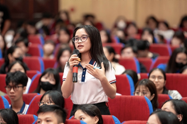 Ngoài việc tiếp nhận kiến thức, sinh viên còn tích cực chia sẻ góc nhìn và thảo luận với các diễn giả về các vấn đề tài chính cá nhân