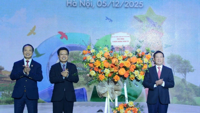 Lễ công bố 2025 đánh dấu hành trình 10 năm của Chương trình CSI. Nhân dịp này, Phó Thủ tướng Chính phủ Hồ Đức Phớc đã trao tặng lẵng hoa tươi thắm đến đại diện lãnh đạo VCCI và Ban chỉ đạo Chương trình, như biểu trưng cho sự ghi nhận những nỗ lực của VCCI – trong vai trò cơ quan chủ trì Chương trình và sự phối hợp của các Ban, bộ ngành trong thúc đẩy phát triển bền vững DN thông qua CSI.