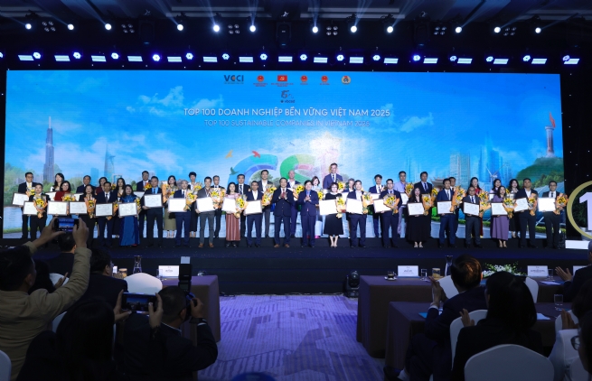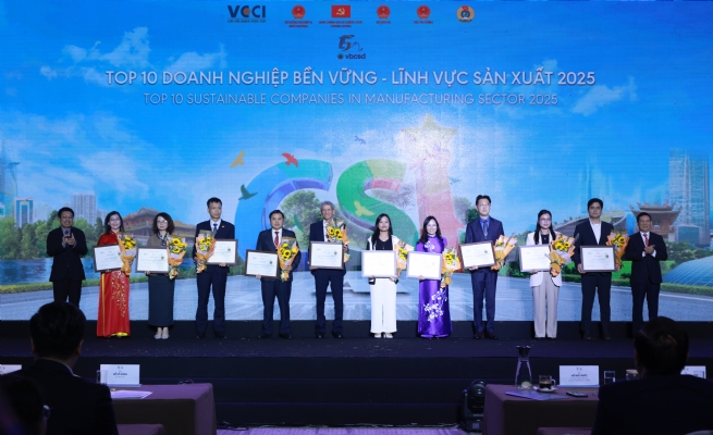 Ngày 05/12/ 2025, Liên đoàn Thương mại và Công nghiệp Việt Nam (VCCI), với đầu mối là Hội đồng Doanh nghiệp vì sự phát triển bền vững Việt Nam (VBCSD-VCCI), đã tổ chức thành công Lễ công bố các Doanh nghiệp Bền vững tại Việt Nam 2025 với chủ đề “Chương mới của Kỷ nguyên Xanh”. Đây cũng là hoạt động đánh dấu mốc son năm thứ 10 liên tiếp nỗ lực, không ngơi nghỉ của công tác tuyên truyền, đánh giá, biểu dương, cổ vũ các doanh nghiệp (DN) tham gia Chương trình Đánh giá, Công bố Doanh nghiệp bền vững tại Việt Nam (CSI). Lễ công bố vinh dự có sự tham gia của Đồng chí Hồ Đức Phớc, Uỷ viên Trung ương Đảng, Phó Thủ tướng Chính phủ, Chủ tịch Hội đồng quốc gia về phát triển bền vững, cùng gần 300 đại biểu bao gồm lãnh đạo và đại diện của các ban, bộ, ngành, cơ quan trung ương và địa phương, các tổ chức trong nước, quốc tế, các cơ quan thông tấn báo chí, cộng đồng DN đã tham dự chương trình.