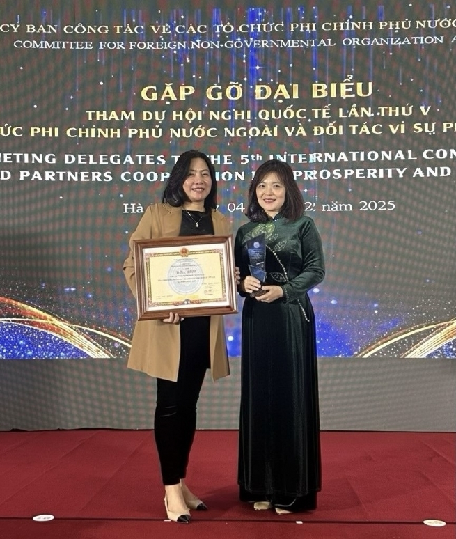Đại diện AstraZeneca Việt Nam nhận Bằng khen của VUFO vì những đóng góp cho phát triển bền vững giai đoạn 2020-2025