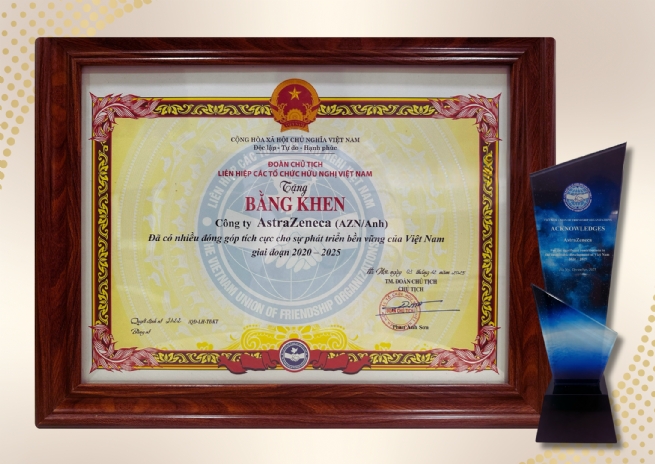 Mới đây, AstraZeneca Việt Nam vinh dự nhận Bằng khen của Liên hiệp các tổ chức hữu nghị Việt Nam (VUFO) vì những đóng góp nổi bật cho phát triển bền vững giai đoạn 2020–2025.
