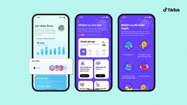 TikTok cũng tiếp thu ý kiến từ Youth Council và các nghiên cứu cho thấy hai phần ba người dùng thanh thiếu niên đánh giá cao các công cụ hỗ trợ quản lý thời gian sử dụng nền tảng số. Người dùng sẽ nhận được huy hiệu khi hoàn thành từng nhiệm vụ, qua đó nâng cao ý thức sử dụng công nghệ.