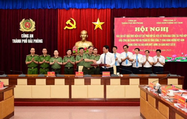 Lễ ký kết thực hiện quy chế hợp giữa Công an TP Hải Phòng và Tổng Công ty Cảng hàng không Việt Nam trong công tác bảo đảm ANTT, ATHK tại Cảng HKQT Cát Bi