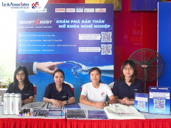 Trong khuôn khổ các hoạt động hướng nghiệp đầu năm 2026, chương trình Boost4Best do Le & Associates (L&A) triển khai tiếp tục mở rộng độ phủ tại các diễn đàn giáo dục – nghề nghiệp lớn. Ngày 10/01/2026, Boost4Best đồng thời góp mặt tại Ngày hội Việc làm – Job Fair 2026 của Trường Đại học Quốc tế Hồng Bàng (HIU) và tham gia tọa đàm “Thời điểm vàng du học – Lộ trình thực tập và sự nghiệp toàn cầu giai đoạn 2026–2031”.