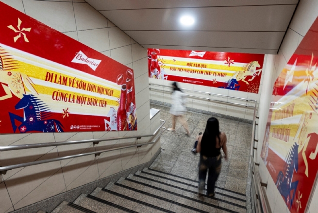 Sắc đỏ Budweiser phủ khắp Metro, lan tỏa thông điệp “Bật nắp Tết đỏ, mừng mọi bước tiến”