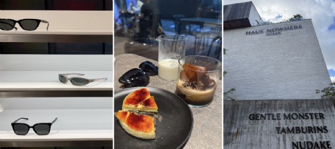 Nổi tiếng với những mẫu kính mắt được các ngôi sao yêu thích, cửa hàng flagship “Haus Nowhere” của Gentle Monster tại Dosan là nơi kết hợp giữa thời trang, hương thơm và nghệ thuật. Không gian này bao gồm cả quán dessert đặc trưng Nudake. Đúng với phong cách dẫn đầu xu hướng, các món tráng miệng tại đây hoàn toàn không bình thường — từ ly latte ngọt được phủ viên đá có hình khuôn mặt, đến chiếc bánh pastry màu đen hình vương miện trông như một tác phẩm nghệ thuật hiện đại. Ngay cả tờ phiếu order viết tay cũng mang một nét tinh nghịch đầy thú vị.