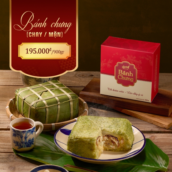 Ở phiên bản nhân mặn, lớp nếp dẻo thơm bao bọc phần nhân đậu xanh bùi mịn kết hợp cùng thịt heo chất lượng, giữ trọn hương vị quen thuộc của bánh chưng ngày Tết. Trong khi đó, phiên bản chay được hoàn thiện từ hạt sen, nấm đông cô và các nguyên liệu thuần chay, phù hợp với xu hướng ăn chay hoặc các mâm cỗ thanh đạm đầu năm.